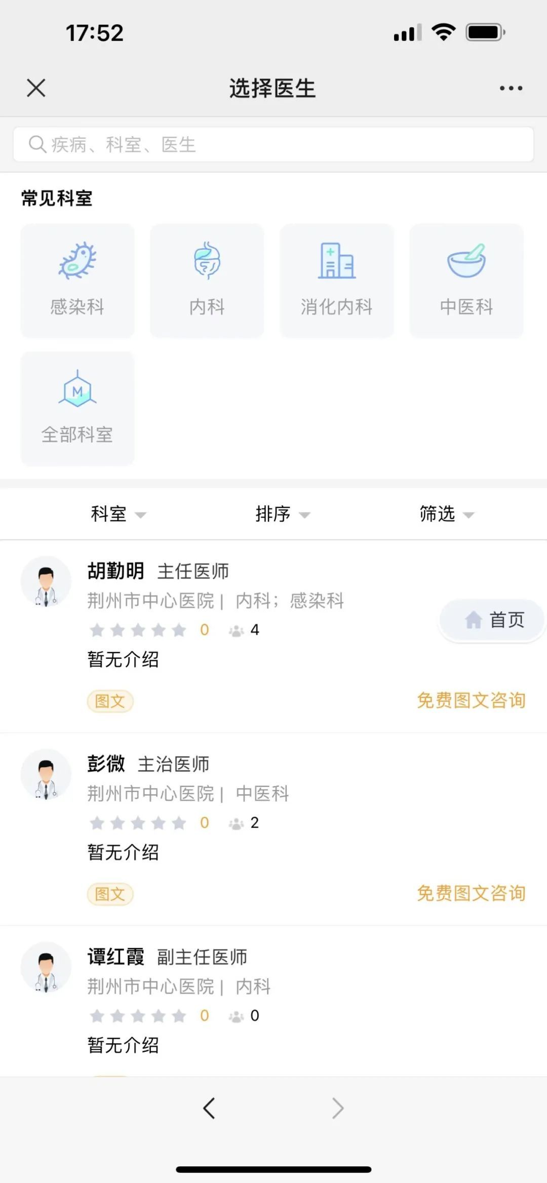 第五步:选择“常见科室”及“医生姓名”