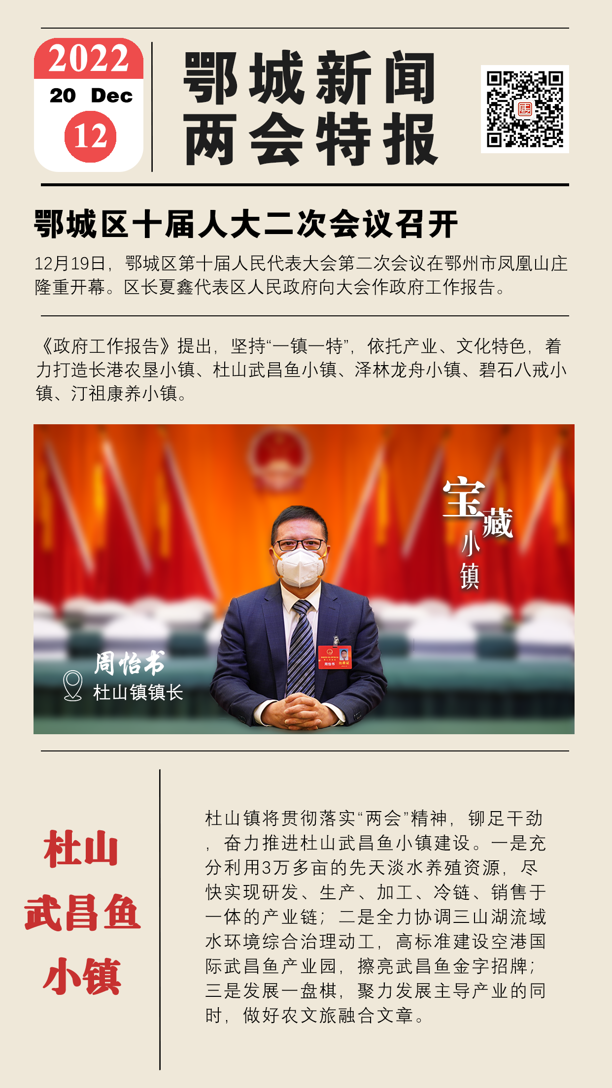杜山镇将贯彻落实“两会”精神,铆足干劲,奋力推进杜山武昌鱼小镇建设。