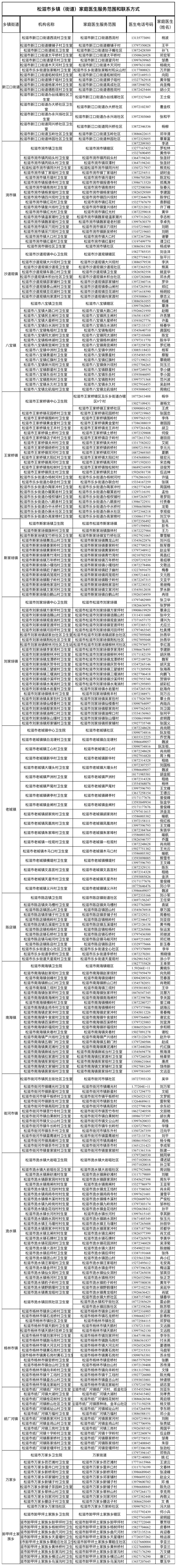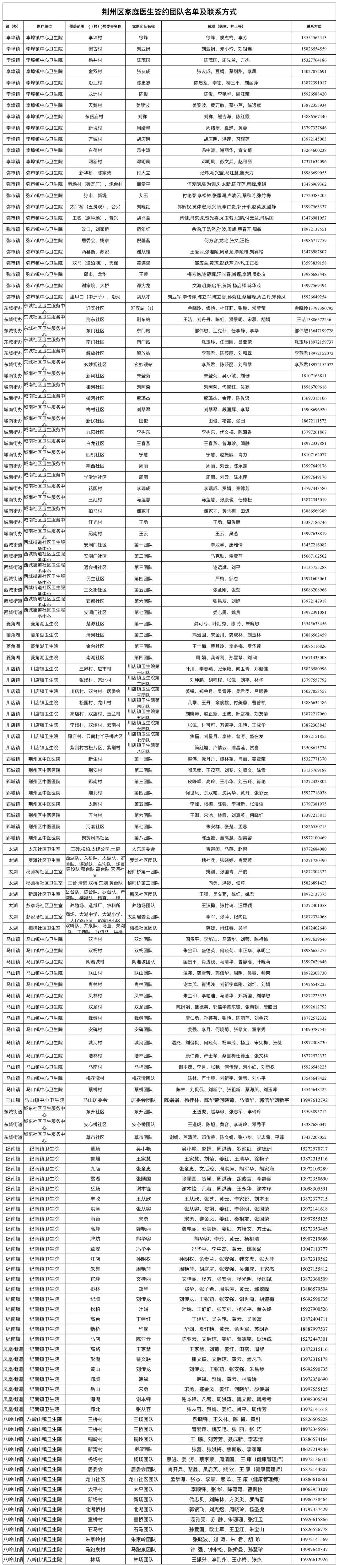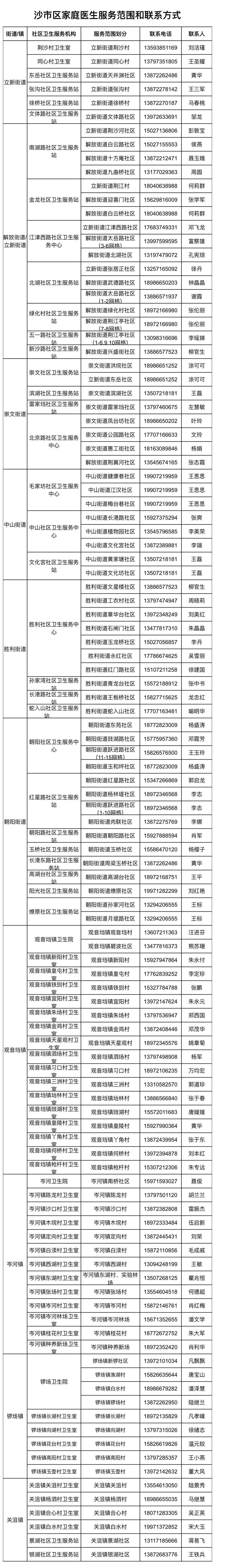 全市家庭医生团队服务范围和联系方式