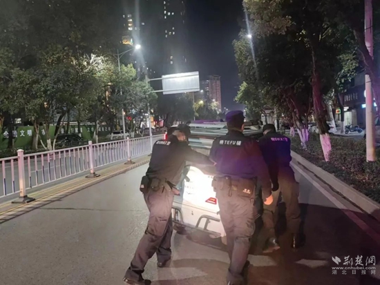 “师傅您好,交警例行检查,请出示您的行驶证和驾驶证。”19时30分,在鄂州市鄂城区凤凰路,交警正在设卡盘查过往车辆。不仅如此,在城东、泽林等综合执法服务站 ,民警也同时开展检查。