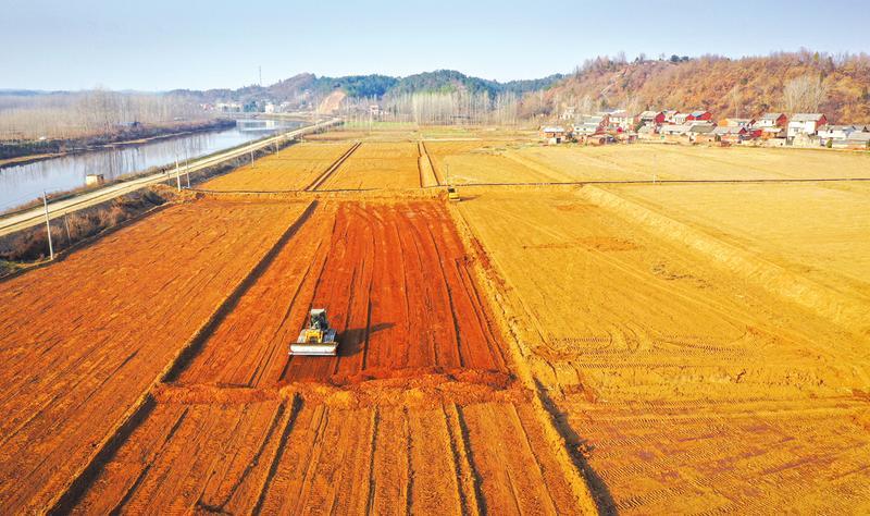 12月29日,随县均川镇光河村高标准农田项目建设现场热闹非凡。多台挖掘机同时作业,平整土地、整固田埂150亩,清淤堰塘280亩,整修沟渠3000米,灌溉直达田间地头。经过改造后,零散“巴掌地”巧变“整片田”,可有效解决耕地面积分散、机械化程度不高、灌溉难等问题,提高土地利用率,降低劳动生产成本,实现农田增效、农业增收。 (随州日报全媒记者李文军、通讯员汪文平摄)