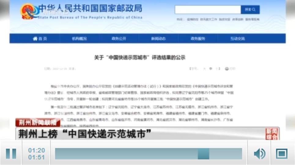 视频:荆州上榜“中国快递示范城市”