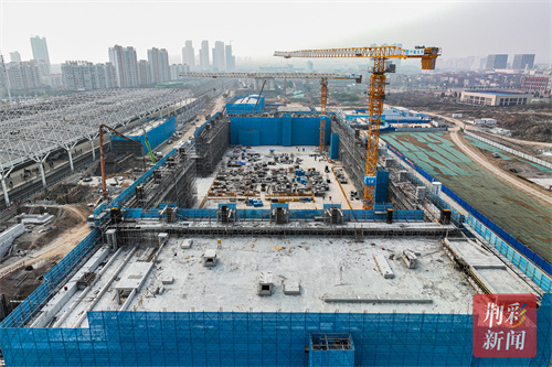 据了解,新建荆荆铁路北站房项目占地16000平方米,由中建三局承建,目前站房东侧已经完成浇筑,站房西侧正在进行浇筑准备,站房主体结构施工将于本月底完成,随后进行外立面施工。元旦期间,全体管理人员和工人抢工期,节假日不停工,力保项目如期完成。