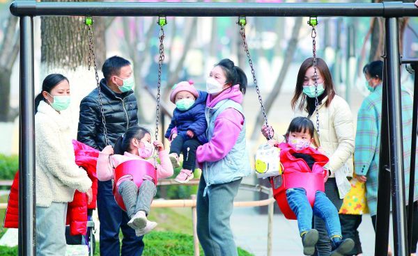 1月3日,随着气温回升,不少家长带着孩子走出家门,来到龙泉公园游玩,尽情享受冬日里的暖阳。(记者 郑波 摄)