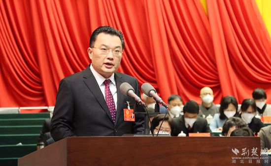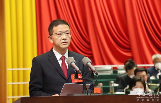 黄冈市委副书记、市长李军杰向大会作报告。记者 胡小军 摄