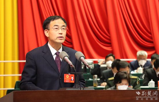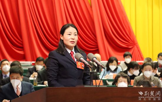 黄冈市中级人民法院党组书记、代院长文利红作报告。记者 胡小军 摄