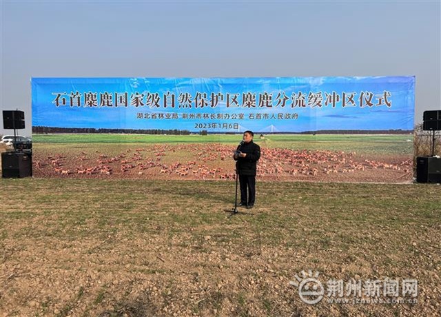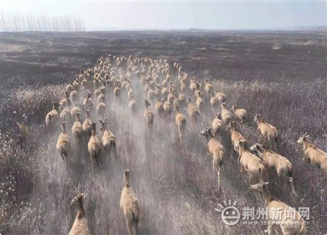 荆州新闻网消息(记者 田心怡 徐雪晴)呦呦鹿鸣,食野之苹。麋鹿种群徜徉长江故道,戏水追逐的和谐图景令人神往。为守护麋鹿及其栖息地生态环境,为湿地精灵保驾护航。近年来,石首市着力腾地8000亩为“麋鹿家园”扩容。1月6日,400头麋鹿奔腾而出,将分流至缓冲区内生息繁衍。