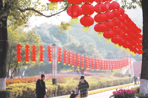 大红灯笼高高挂,张灯结彩迎新年。为喜迎即将到来的春节,日前,市城管执法委组织人员在北京路、人民公园、四方山生态公园、文化广场、高铁十堰东站等区域悬挂灯笼,营造浓厚节日氛围。记者 刘旻 摄