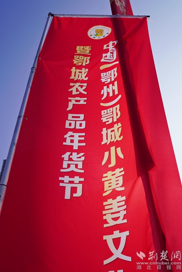 醒目的年货节旗帜。金康 摄
