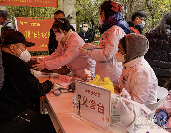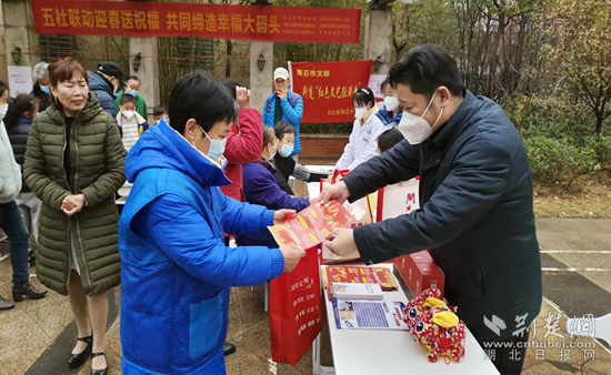 荆楚网(湖北日报网)讯(记者吕鉴蕾 通讯员余婷婷、李莎)1月12日,黄石大码头社区联合书法协会、花湖街道社工站、老年人协会、文体协会、花湖卫生服务中心,开展“五社联动迎新春送祝福 共同缔造幸福大码头”活动,为社区居民带去便民服务。