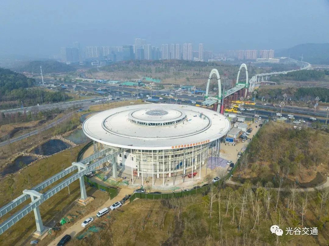 “光谷光子号”首列车于2022年8月26日下线,12月26日在龙泉车辆基地成功实现“场内试跑”;6座车站幕墙、室内装饰装修、设备系统等已基本完成。