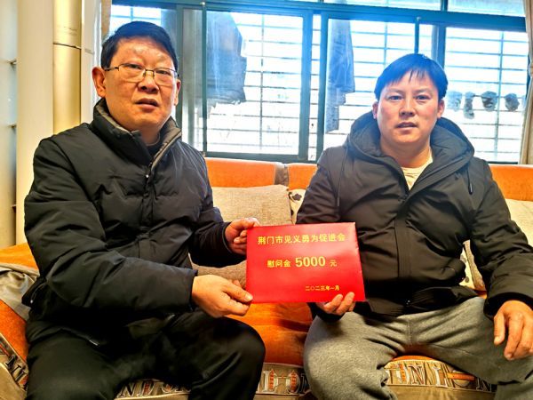 据悉,此前,市见义勇为促进会对全市市级见义勇为困难人员家庭进行摸底,从中筛选9个家庭为慰问对象,他们中有的失去亲人,有的家人常年患病。慰问采取线上与线下形式进行,其中线下走访慰问了上述2个见义勇为困难人员家庭,线上慰问了7个见义勇为困难人员家庭,他们分别是在见义勇为中英勇献身的沙洋人陈流锋、钟祥人邹明政、雷大元、许红武等困难人员家庭,以及京山人郭全坤、钟祥人王顺祥、掇刀人蔡荆等见义勇为困难人员家庭。慰问人员在送上新春祝福的同时,均为他们送上5000元慰问金。