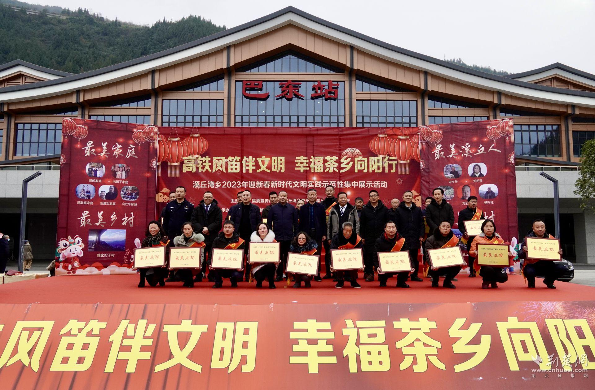 荆楚网(湖北日报网)讯(通讯员 廖逸婷)高铁风笛伴文明,幸福茶乡向阳行。1月16日,巴东县溪丘湾乡联合部分县直单位集中开展迎新春新时代文明实践示范活动,在平阳坝巴东高铁站站前广场举办以“护路爱家,铆足干劲文明出发”为主题的迎春文艺汇演。