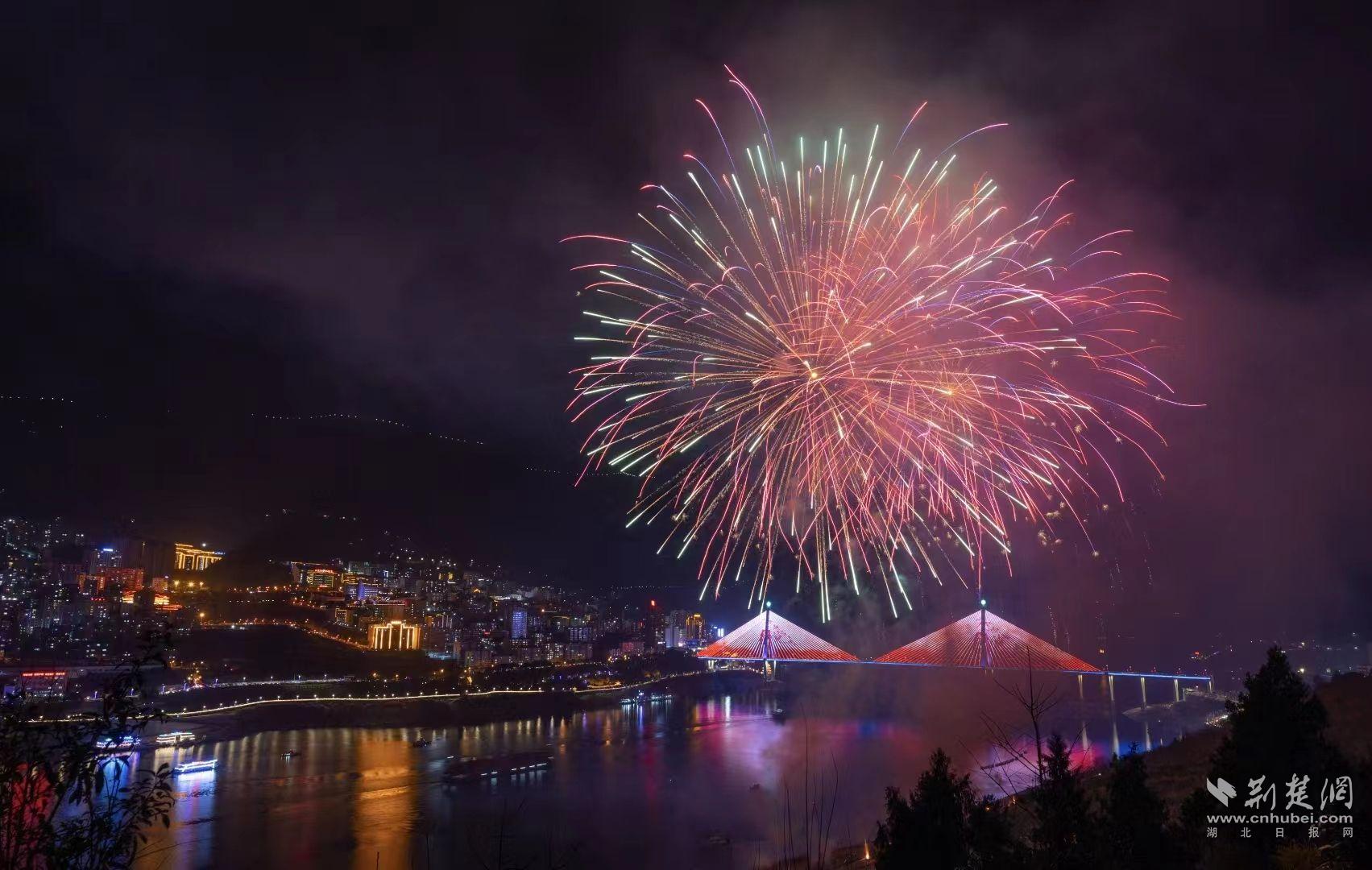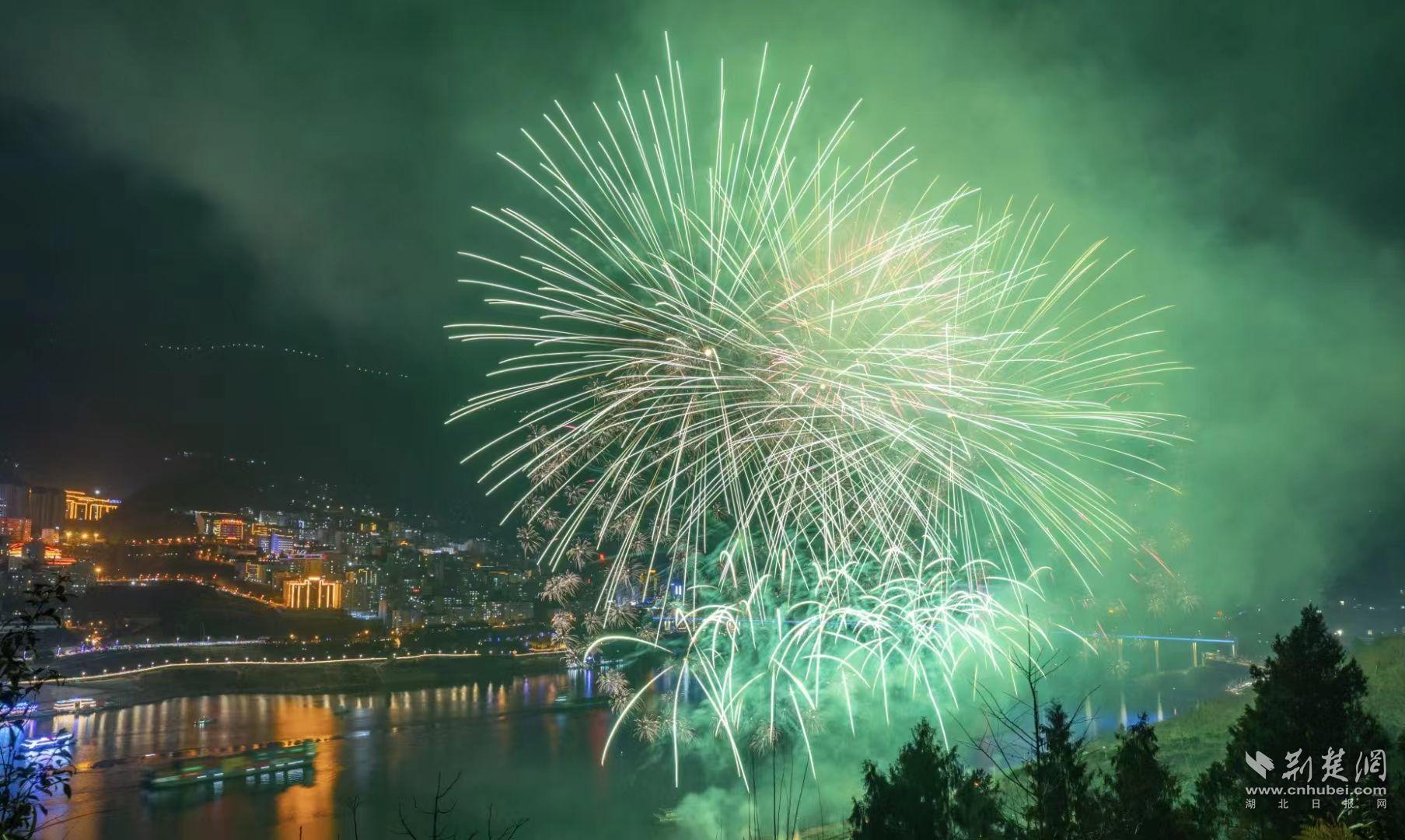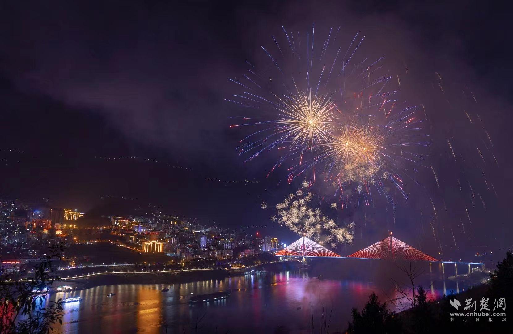 荆楚网(湖北日报网)讯(通讯员 高炜)火树银花耀峡江,振翅腾飞启新程。1月19日晚,巴东县2023年春节“寄语三峡一起腾飞”无人机秀及“最美夜·醉巴东”烟花秀在峡江两岸精彩上演。