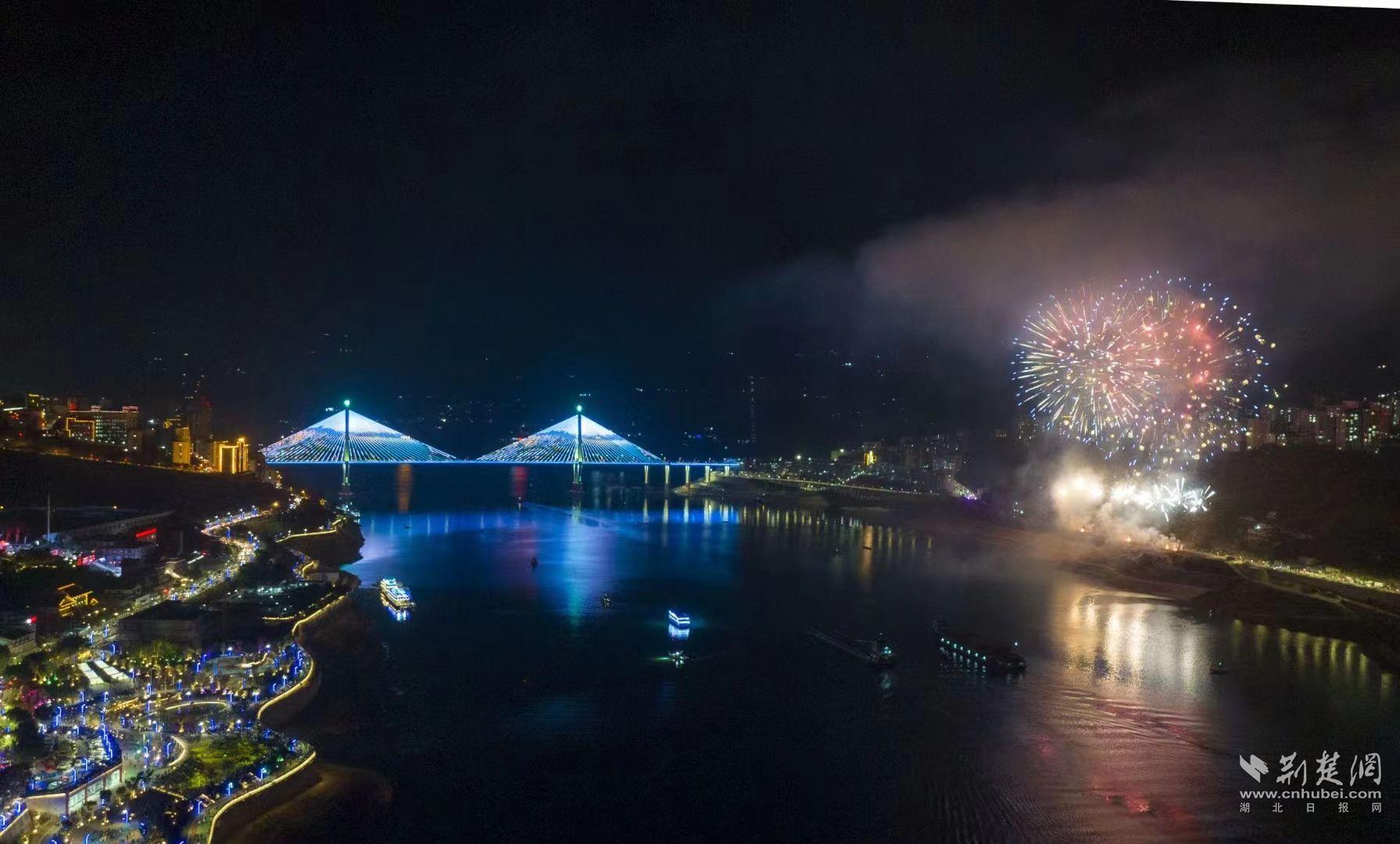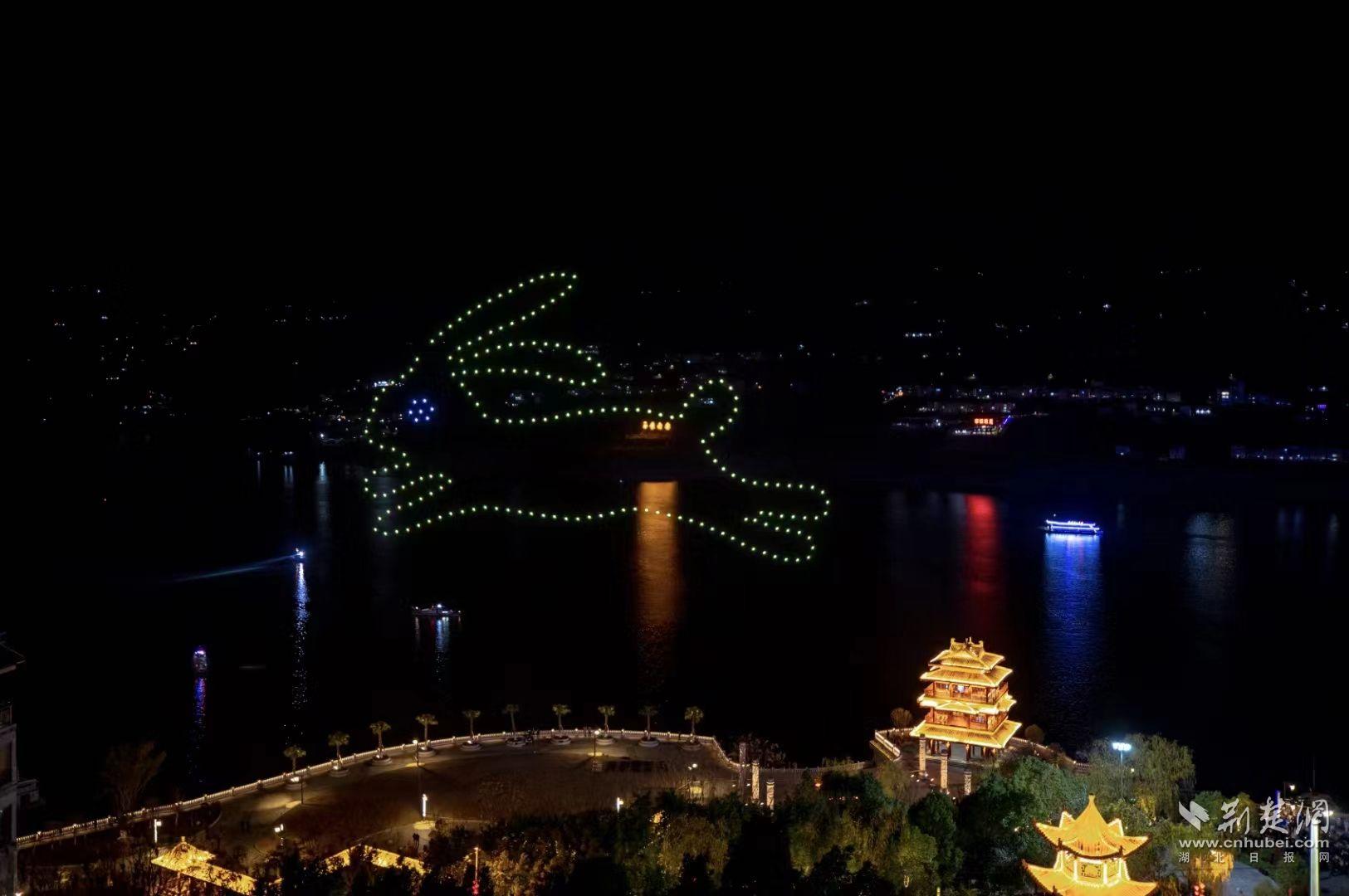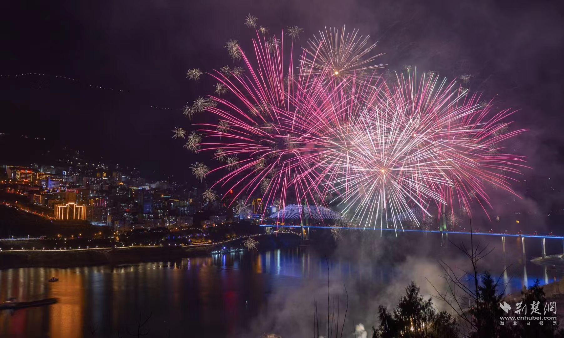 荆楚网(湖北日报网)讯(通讯员 高炜)火树银花耀峡江,振翅腾飞启新程。1月19日晚,巴东县2023年春节“寄语三峡一起腾飞”无人机秀及“最美夜·醉巴东”烟花秀在峡江两岸精彩上演。