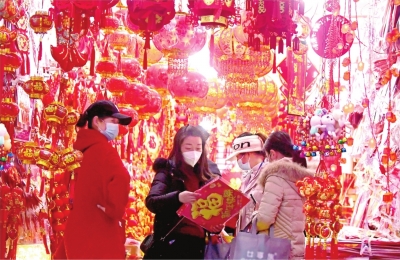 春节临近,汉口集稼嘴市场,不少市民前来选购新年装饰品迎新春。