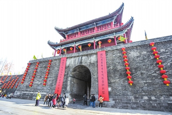 无联不成春,有联意才浓。自1月18日起,荆州古城寅宾门、新东门、公安门等9座城门陆续悬挂上巨幅大红春联。一幅幅寓意祥和的春联,为荆州古城增添了喜庆祥和的节日氛围,彰显了荆州加快建设江汉平原高质量发展示范区的决心与前景。此次城门挂春联活动由市委宣传部、市文旅局、市文联主办,市楹联学会、市书法家协会、市古城墙保护发展中心承办。