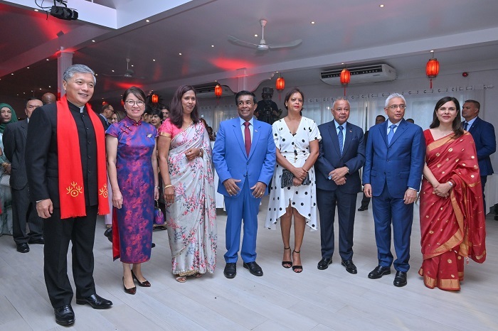 人民网约翰内斯堡1月21日电 (记者闫韫明)1月20日,中国驻毛里求斯大使馆在安娜庄园隆重举办2023年春节招待会,欢庆癸卯新春。应朱立英大使夫妇邀请,毛里求斯总统鲁蓬夫妇、总理贾格纳特夫妇、副总统博赛仁夫妇、议长波基尔、第一副总理奥比加杜、外长加努等多位政要和家属以及当地社会各界、驻毛使团、华侨华人、汉语教师、中资机构代表等600余人出席。