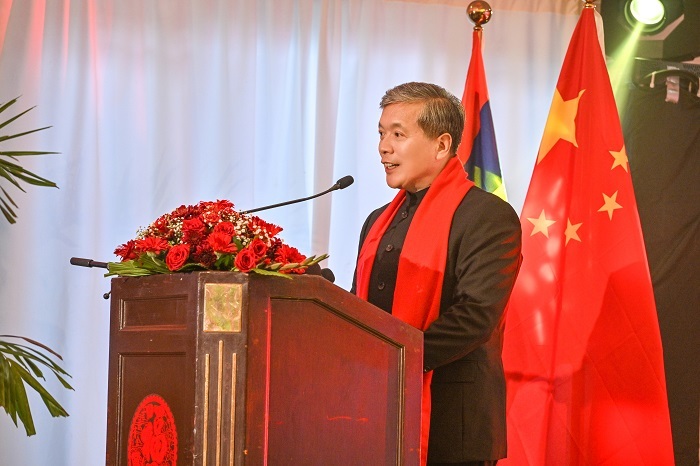 中国驻毛里求斯大使馆2023年春节招待会现场。中国驻毛里求斯大使馆供图