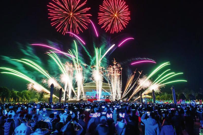 炎帝故里景区大年三十除夕夜,燃放烟花,场面壮观。 (随州日报全媒记者李文军、通讯员高建新摄)