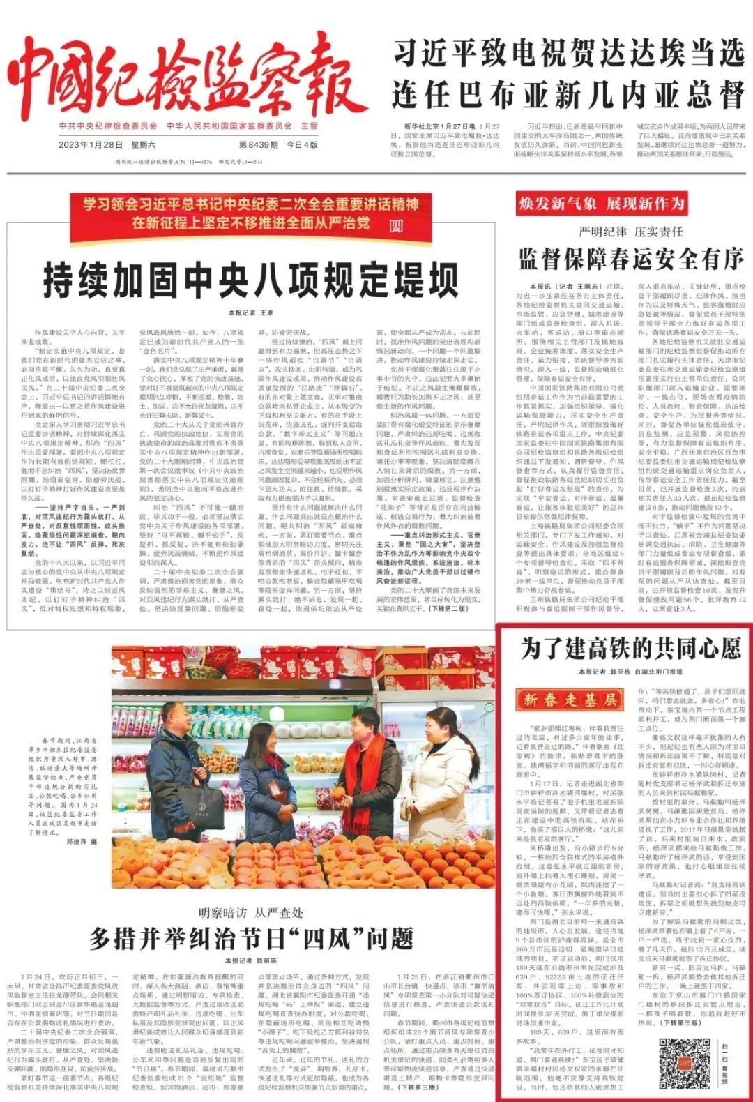 今天是春节假期后上班第一天,《中国纪检监察报》头版和中央纪委国家监委网站、《学习强国》App和《湖北日报》头版分别在“新春走基层”专栏中聚焦荆门,推出了《为了建高铁的共同心愿》《追花人回家乡酿造“甜蜜事业”》等稿件。同时,春节期间,《人民网》推送了《1.87万个村(社区)防疫理事会筑牢农村防疫防线》,聚焦荆门农村疫情防控工作。