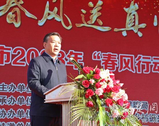 鄂州市人社局党组书记、局长王惠锋发表讲话。姜梦瑶 摄