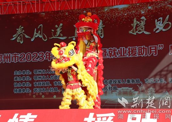 与此同时,暖场表演鼓乐齐鸣、热火朝天,歌声声动梁尘,舞狮活灵活现、精彩绝伦,引得观者连连叫好。现场一片欢快热闹的场景,好似寓意着每一位求职者满载而归。