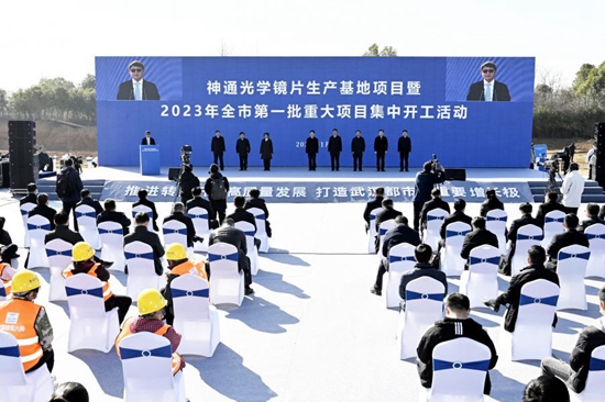 1月31日,黄石市组织视频连线收看2023年全省一季度重大项目集中开工活动,并举行神通光学镜片生产基地项目暨2023年全市第一批重大项目集中开工活动。市委书记郄英才在黄石分会场参加活动,现场宣布项目集中开工。市委副书记、市长吴之凌在黄石分会场参加活动。