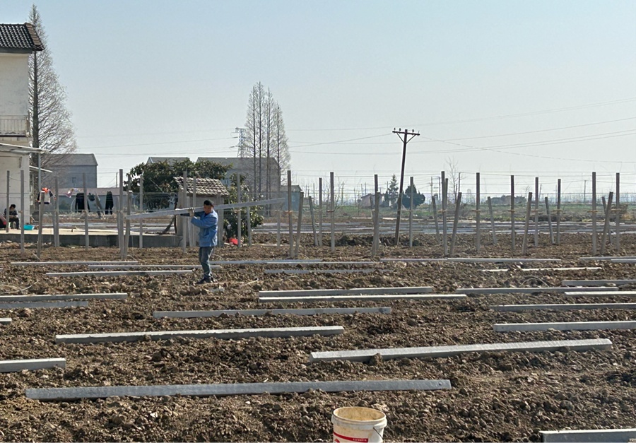 1月31日,记者走进该镇和平村七组,放眼望去,到处都是一片繁忙景象。种植户沈信万正在葡萄田间进行整地、拉线、立柱等作业,一幅初春人勤农忙图在地里缓缓展开。