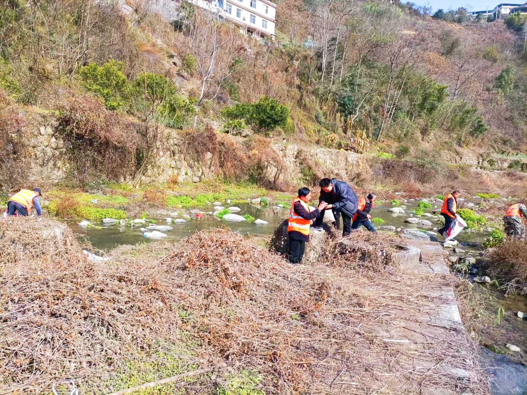 1月29日,建始县业州镇组织20余名河道保洁员集中开展“清理河道垃圾,守护绿水青山”活动。