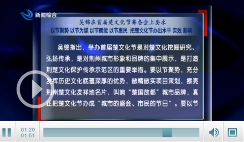 视频:吴锦在首届楚文化节筹备会上要求 以节聚势 以节为媒 以节赋能 以节惠民 把楚文化节办出水平 实效 影响