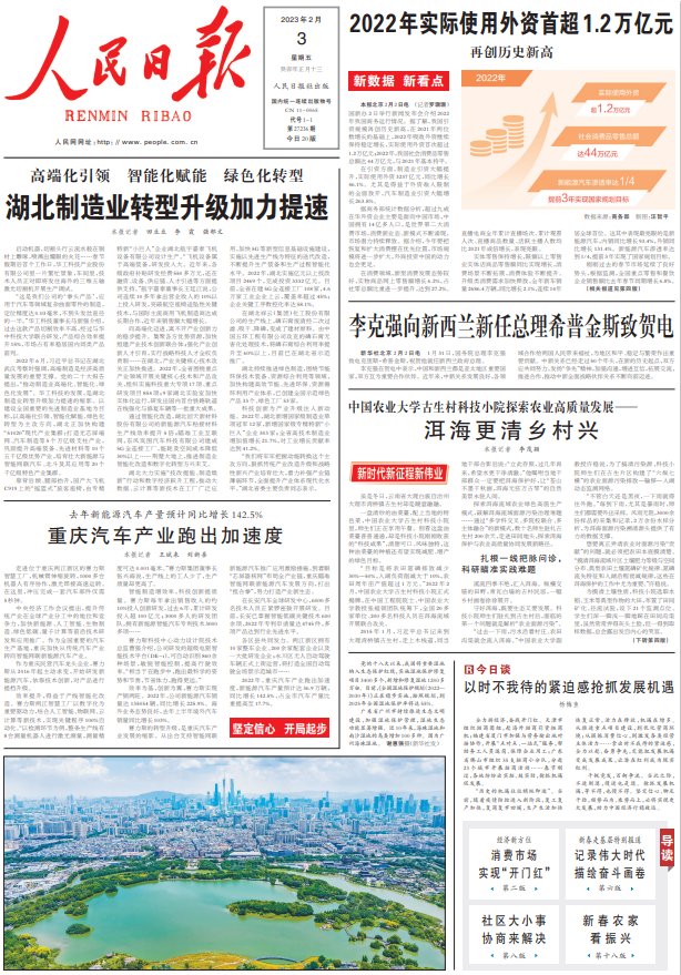 《 人民日报 》( 2023年02月03日 第 01 版)