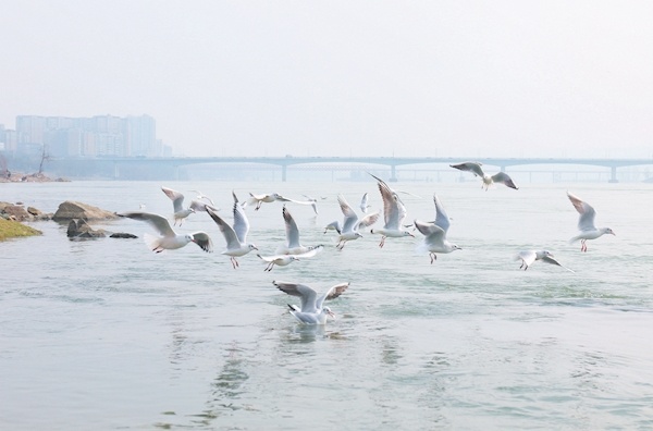 江鸥在丹江口库区水面上翩翩起舞