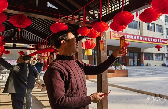 古楼街道考棚社区青莲广场上猜灯谜、赏花灯、看展览、品汤圆等趣味环节轮番上演。清廉亭中,一盏盏极具中国传统喜庆元素的花灯高高悬起。工作人员早早将正丹纸精心剪裁成条状,提前写上了以清廉文化为主要内容,集知识性、思想性、趣味性于一体的灯谜,供居民竞猜。