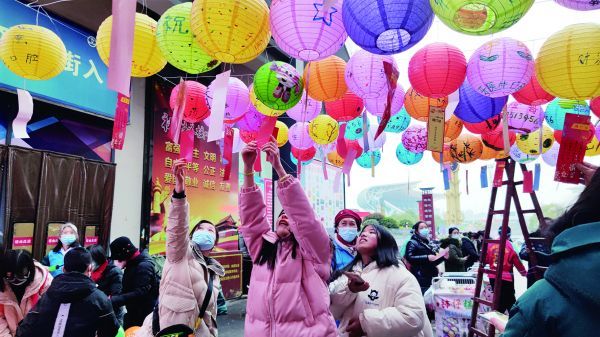 红的、紫的、粉的……在各种颜色的传统花灯装扮下,万达楚街满是元宵节的味道,徜徉其中的人们仿佛回到了古代,在欣赏花灯的同时还能够猜灯谜,灯会现场一下子成了网红打卡点。今年举办的楚天灯会共筹集到300多盏花灯,且每盏花灯都由人们手绘装扮,300多盏花灯,代表着300多份祝福。楚天灯会活动上线后,爱心商家和爱心人士纷纷参与认领花灯,荆门市体育场馆管理中心和牙医生口腔会所一下子就各认领了100盏,300多盏花灯不到3天便被认领一空。在社工的带领下,爱心商家参与手绘花灯,并通过花灯祈福,表达对家人、社会和祖国的美好愿望。