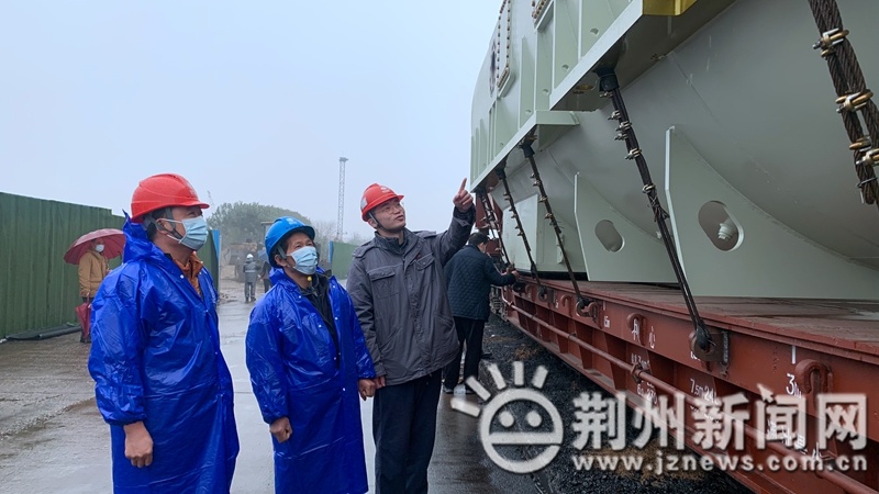 超级超限货物专列从上海发出抵达荆门南站后,按照预案,荆州市地方铁路有限公司组织专班赶赴现场交接,对专列信息进行核对,对车辆装载加固状态进行全面细致检查及严格校验。为确保运输过程中的绝对安全,这趟“慢行专列”全程限速30公里/小时,部分路段最低时速10公里。