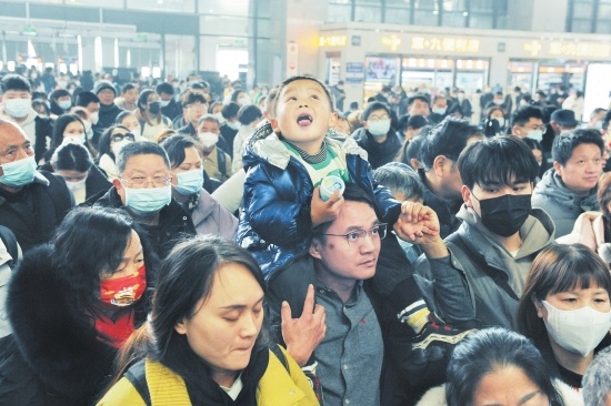 2月7日,荆州火车站迎来第二波返城务工流和首批学生流,进站秩序有条不紊,乘客自觉佩戴口罩和接受安检。