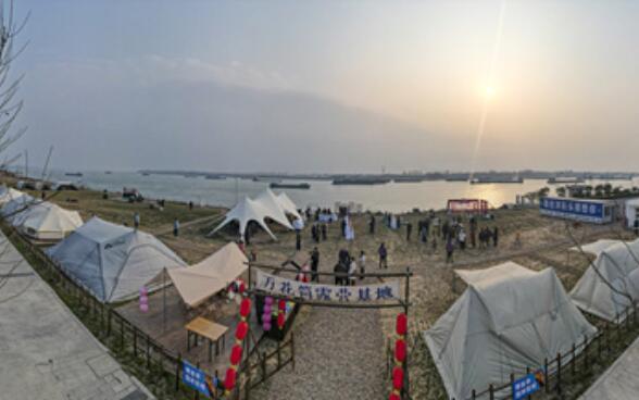 日前,在沙市洋码头文创园滨江露营基地,不少市民游客进行围炉煮茶、趣味游戏、露营等户外活动。