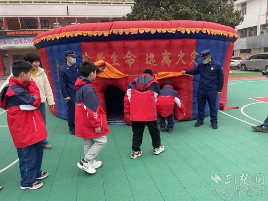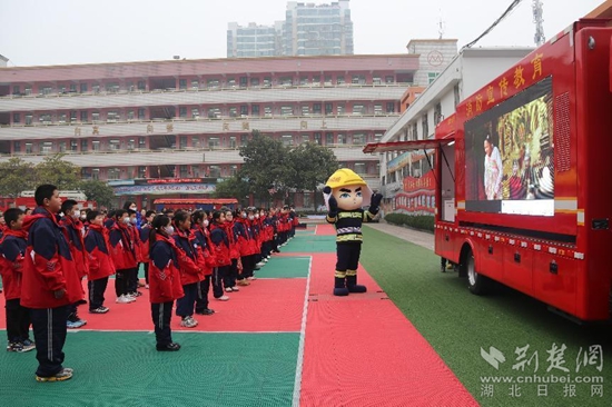荆楚网(湖北日报网)讯(通讯员 陈慧敏 于巧庆) 2月7日下午,随着亮红的消防车缓缓驶进操场,鄂州消防大队的“蓝朋友”们来到洋澜小学,受到了洋澜小学孩子们的热烈欢迎。