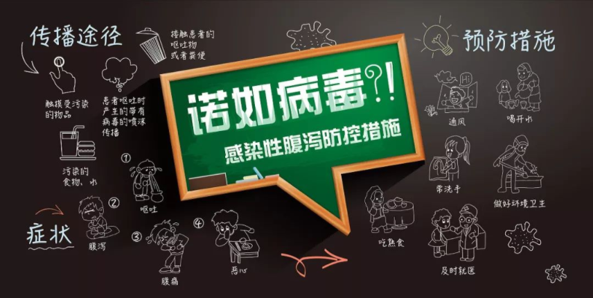 感染诺如病毒主要症状为恶心、呕吐、腹泻,症状持续时间平均为2-3 天,一般在感染病毒后12-48小时出现症状。儿童以呕吐为主。此外,头痛、轻度发热、寒颤和肌肉痛也是常见症状,严重者可出现脱水,引起严重的健康问题。诺如病毒感染性胃肠炎尚无特殊的治疗手段,以对症治疗为主,病程通常为2-3天,预后良好,一般无后遗症。