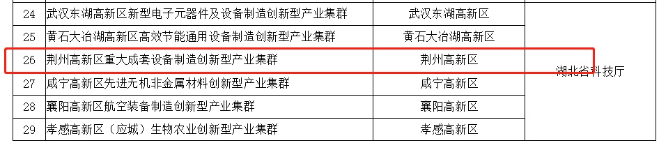 2月15日,科技部火炬中心公示2022年度国家级创新型产业集群。荆州高新区重大成套设备制造创新型产业集群入选。