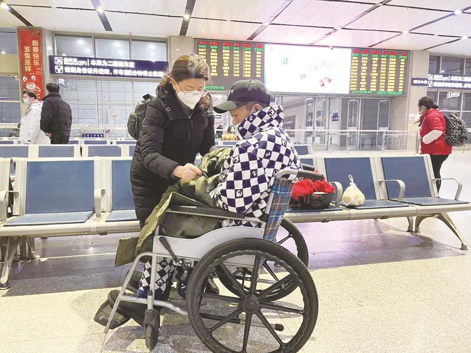 三峡晚报讯(首席记者高伊洛 通讯员吴丽 秦锦)2月14日下午3点半,北京西火车站出口,坐在轮椅上的董建伟老人紧紧抓住护送他返乡的宜昌市救助管理站工作人员的手,热泪盈眶。离乡8年,跨越1300公里,老人终于“回家”。