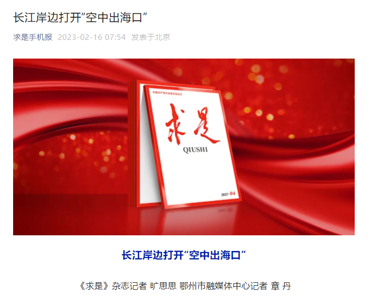 2023年第4期《求是》杂志刊登标题为《长江岸边打开“空中出海口”》的文章,关注鄂州花湖机场,全文如下: