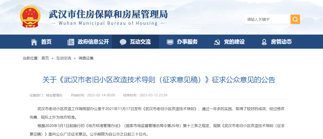 发布《武汉市老旧小区改造技术导则(征求意见稿)》