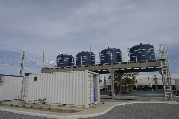 这些饮用水来自中国国家电网公司巴西苦咸水淡化公益项目(国网巴西苦咸水淡化项目),该项目由中国国家电网巴西电力股份公司(国网巴电公司)投资建设。项目通过膜法反渗透技术净化地下水,日均可产80吨纯净水,并通过输水管道送至附近三个原住民社区,供800多个家庭共计3000余名居民使用。