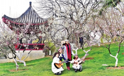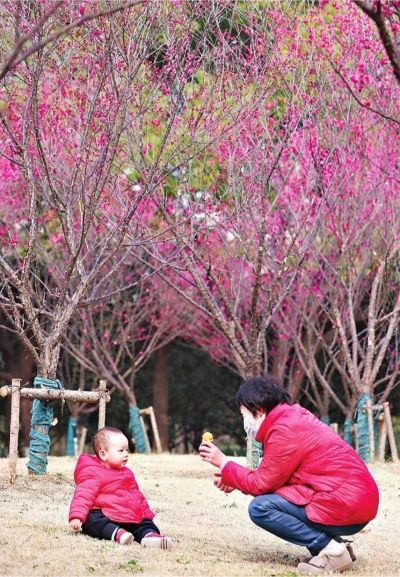 野趣丛生的东湖马鞍山森林公园山林环绕,青草葱葱。占地面积40余亩的梅山上,1300多株梅花摇曳生姿,游客或在梅山上漫步,或在凉亭中休憩。6岁的小糖喜笑颜开地说:“今天和爸爸妈妈一起欣赏到了美美的梅花,又看到了可爱调皮的小猴子,真是太开心啦!”