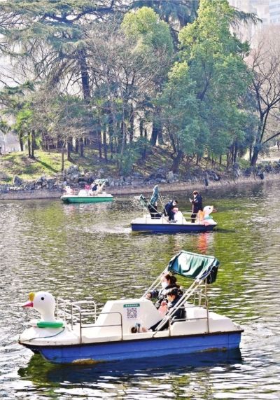 2月19日,市民在中山公园划船。
