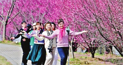 2月19日,金银湖绿道小梅林中翩翩起舞的游人。