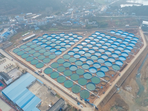 2月15日,笔者拍摄的湖北汉江鲟鱼谷产业园一期项目。该产业园位于郧阳区梅铺镇,总投资30亿元、占地面积3000亩,建有国内先进的鲟鱼养殖基地、渔光互补分布式太阳能光伏发电站及配套加工设施等。项目一期建设圆柱形陆地标准鱼池158个,每池可投放7.5至15公斤规格的鲟鱼300至400条。据悉,2月10日以来,该公司正加紧投放鲟鱼苗,计划3月中下旬所有鱼池进入满负荷状态。通讯员王涛摄