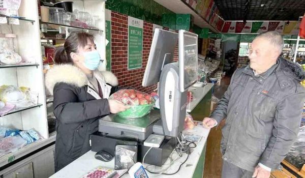 在惠民农贸大市场一摊位前,一位老者购买了一袋草莓与一盒车厘子。老人说:“过年时草莓、车厘子太贵了没舍得买,现在便宜了不少,买点回去和老伴一起吃。”